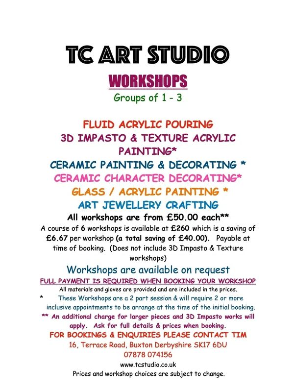Workshops at TC Art Studios are a fun way to explore your artistic potential. Explore your artistic side with paints or try your hand at jewellery making